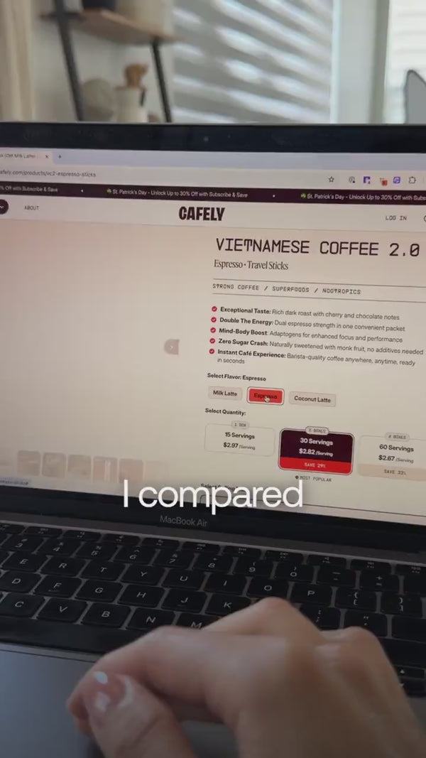 Exceptional Taste: Silky smooth body with a sweet and milky finish Double The Energy: Dual espresso strength in one convenient packet Mind-Body Boost: Adaptogens for enhanced focus and performance Zero Sugar Crash: Naturally sweetened with monk fruit, no additives needed Instant Café Experience: Barista-quality coffee anywhere, anytime, ready in seconds
