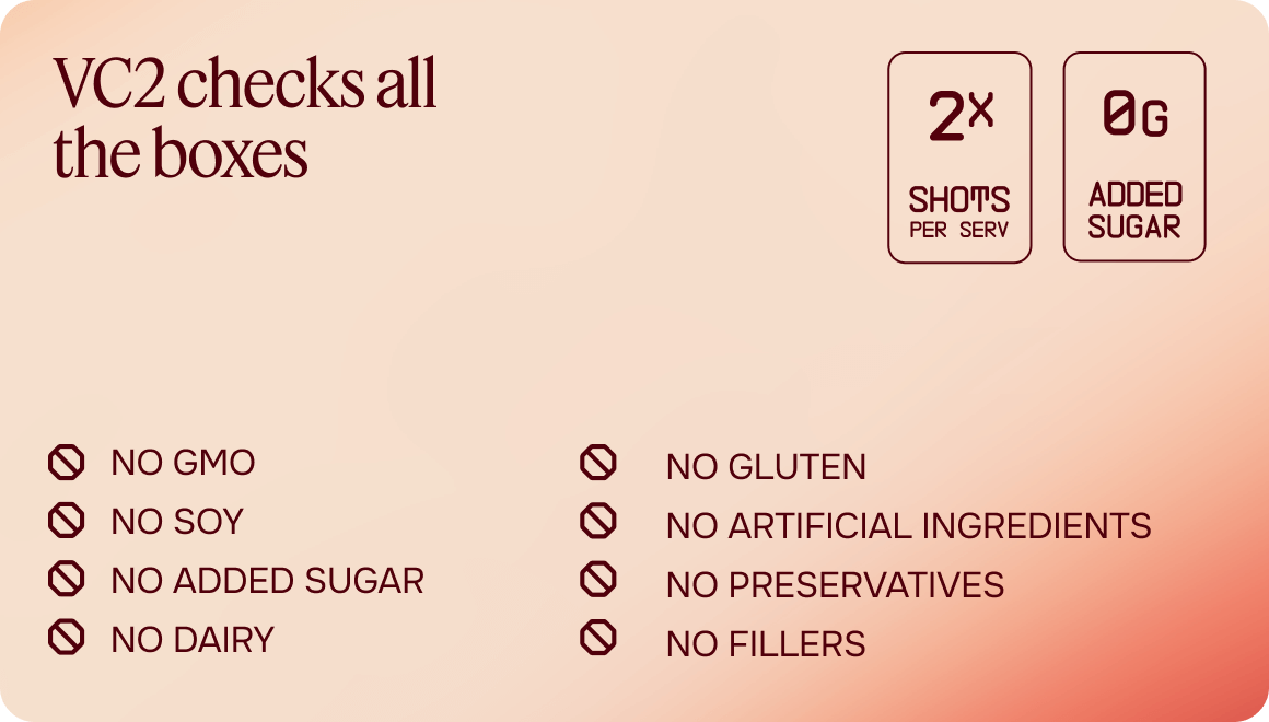 | Natural Caffeine | Plant Powered | Added Sugar | Calories | No Crash or Jitters | Focus Boost & Clarity | Ready in Seconds | Travel Friendly | 60-day Happiness Guarantee | ||
