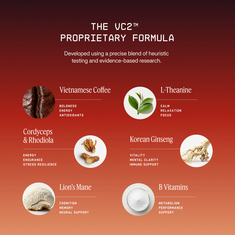 Vietnamese coffee + Korean red ginseng + L-theanine = smooth, lasting energy without the crash.